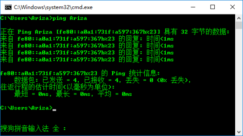 据查,win7及其以后版本,CMD下使用“ping hostname”将得到IPv6地址而不是IPv4。